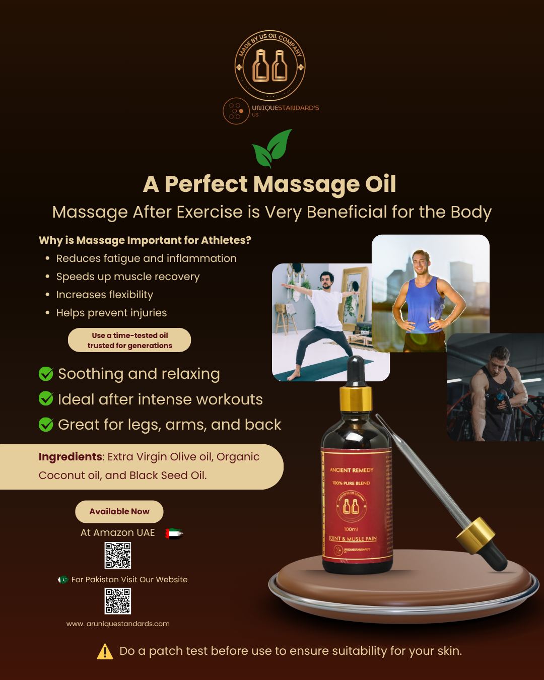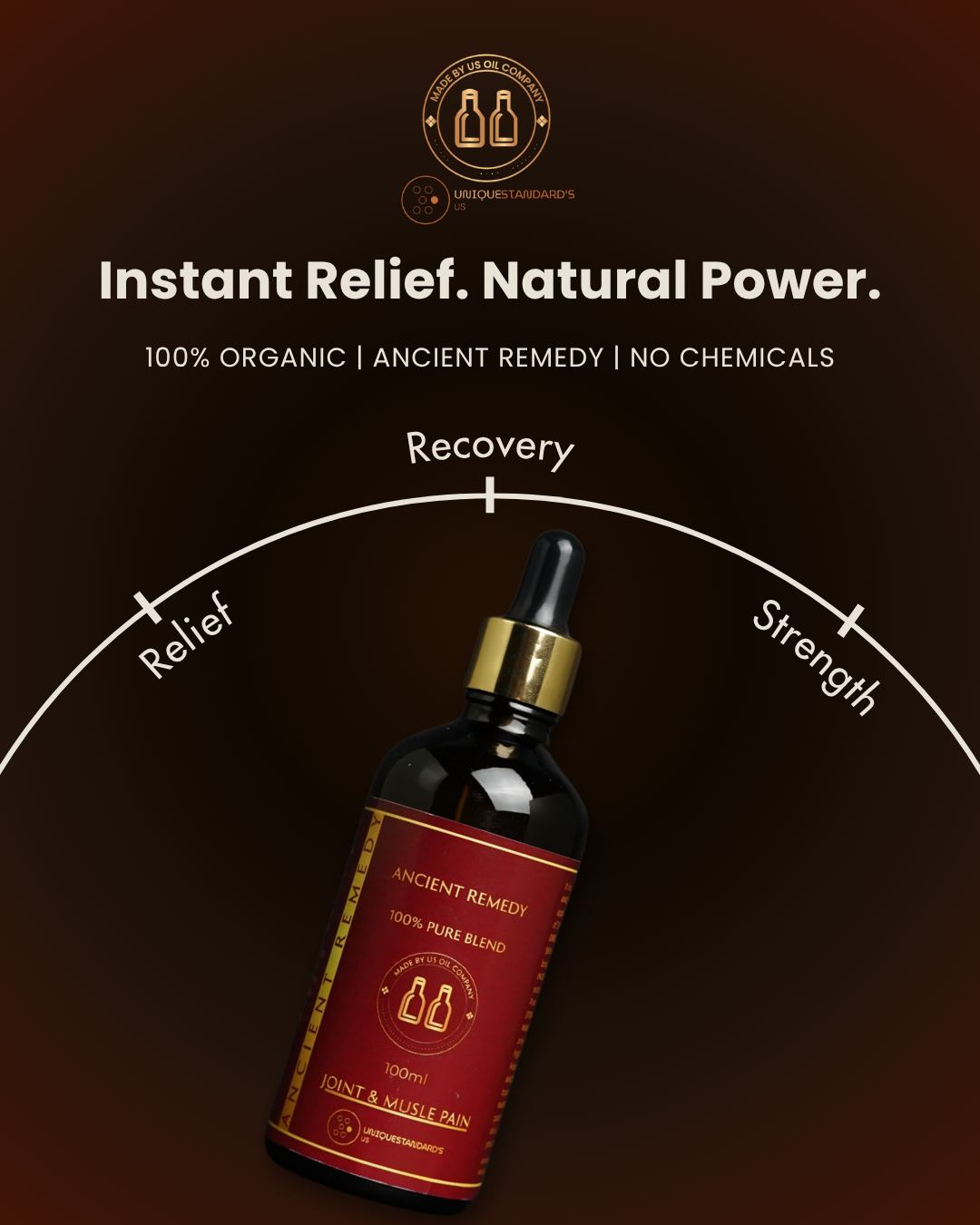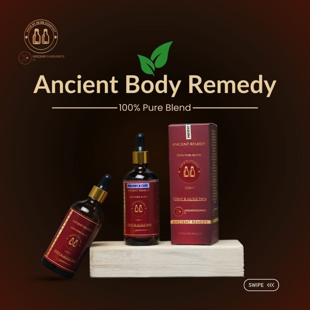 "Ancient Remedy Oil works wonders on my sore muscles after workouts. It gives a warm, relaxing feeling and reduces stiffness. Very happy with this product!"
