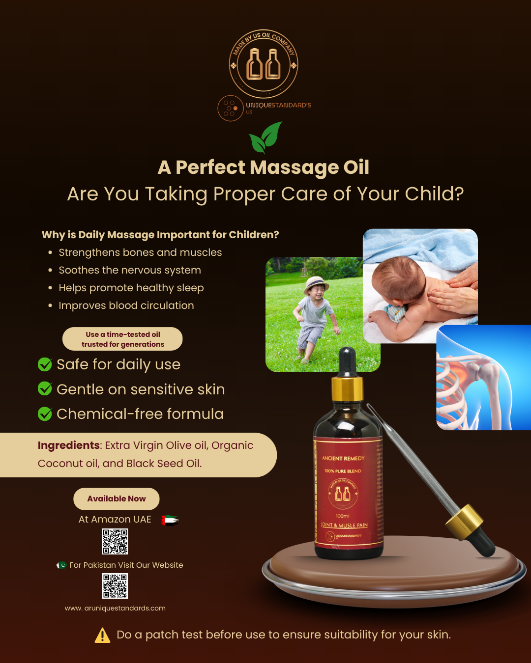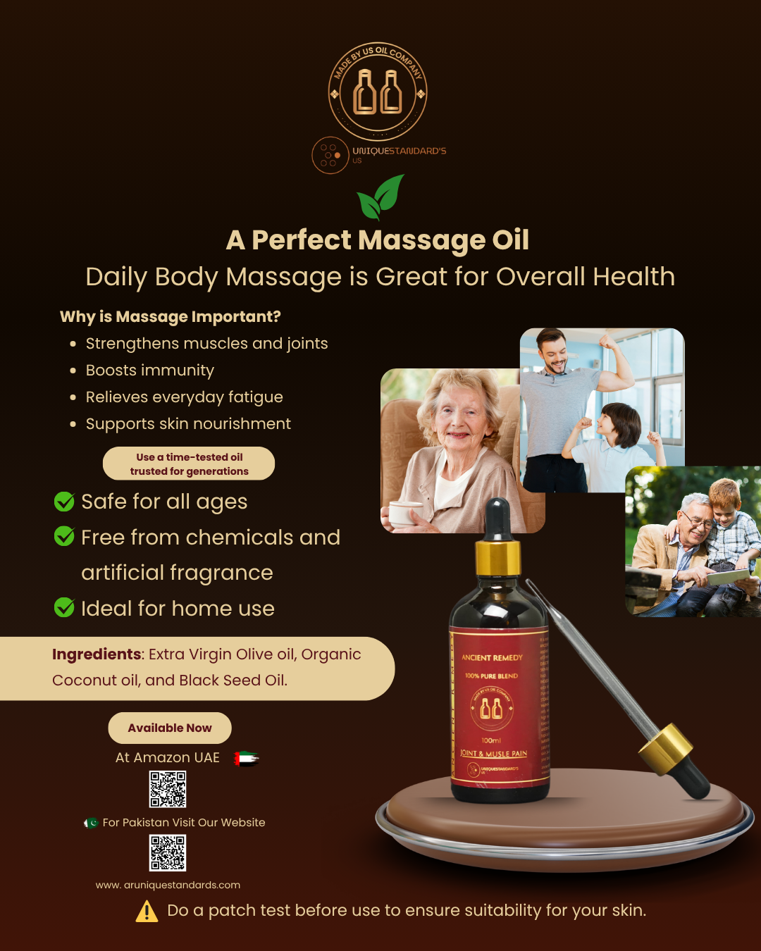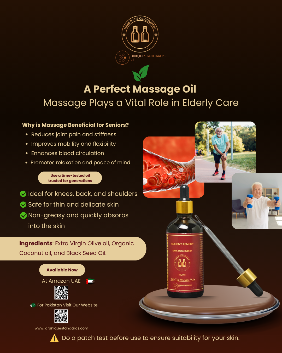 "Ancient Remedy Oil works wonders on my sore muscles after workouts. It gives a warm, relaxing feeling and reduces stiffness. Very happy with this product!"