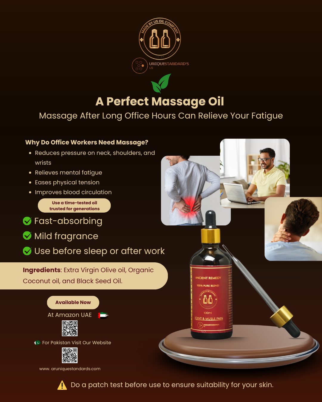 "This oil is a lifesaver! I had constant back pain, and after using it for a few days, the pain has gone down a lot. It’s now part of my daily routine."
